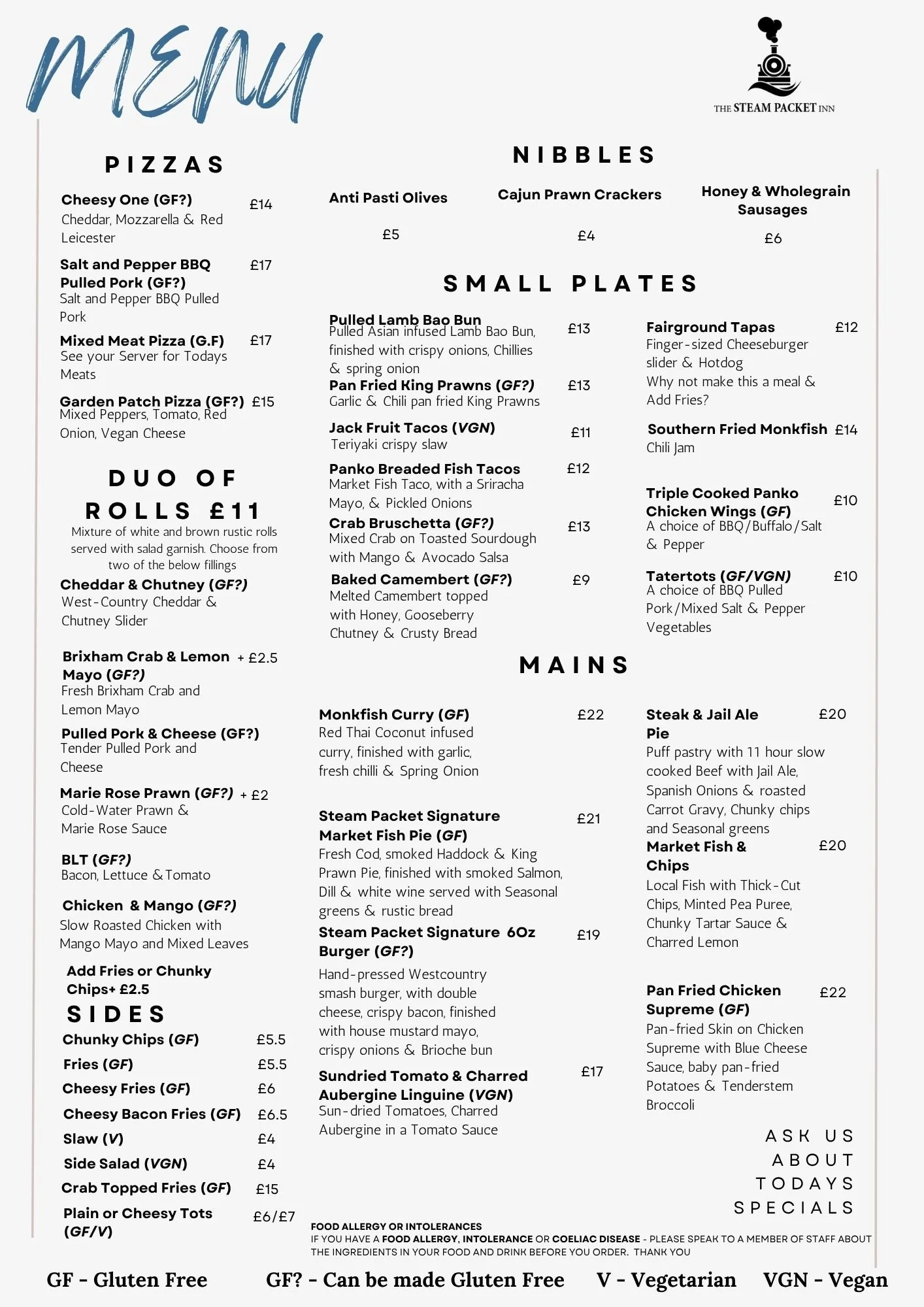 Our Menu’s