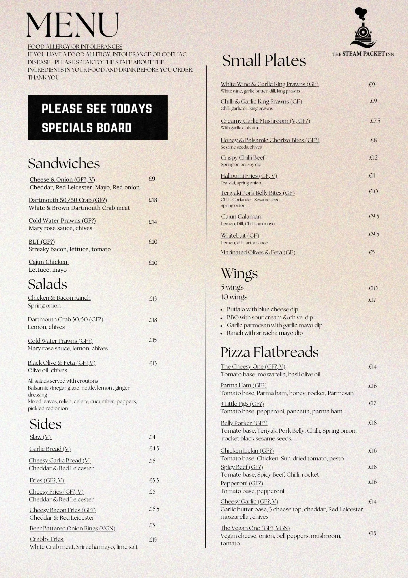 Please come in and see our beautifully Crafted Specials Board…