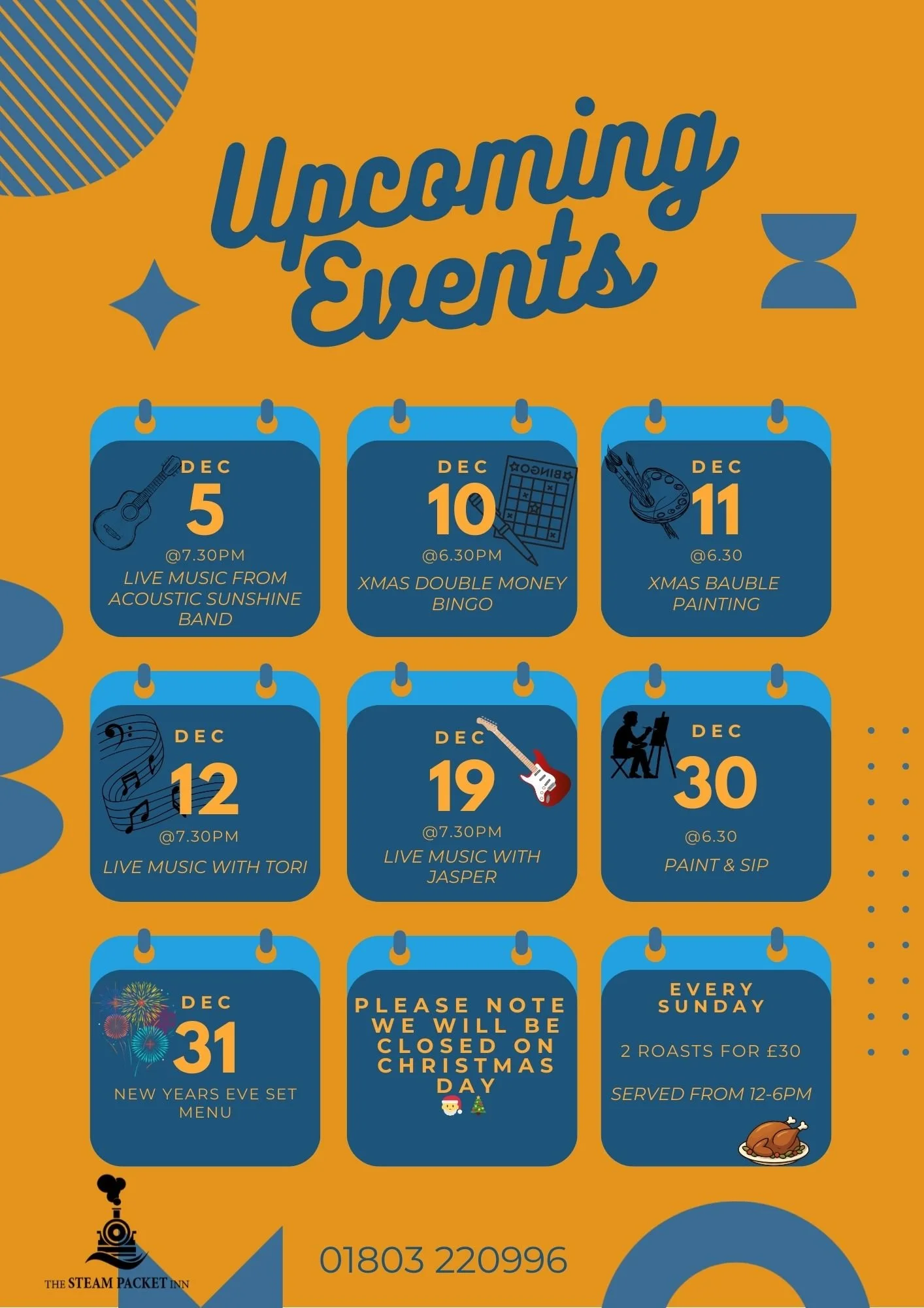 The Steam Packet Inn offers a vibrant array of events that cater to all interests, ensuring a lively atmosphere throughout the week. Guests can enjoy an evening of live music, featuring local talents that create a festive ambiance. For those looking to test their knowledge, regular quizzes provide an engaging challenge, while regular bingo nights cultivate a sense of community and friendly competition. Themed evenings add an extra layer of fun, with a variety of themes that transform the venue and invite patrons to participate in entertaining activities. Whether it's a casual night out or a special occasion, the Steam Packet Inn has something for everyone to enjoy.